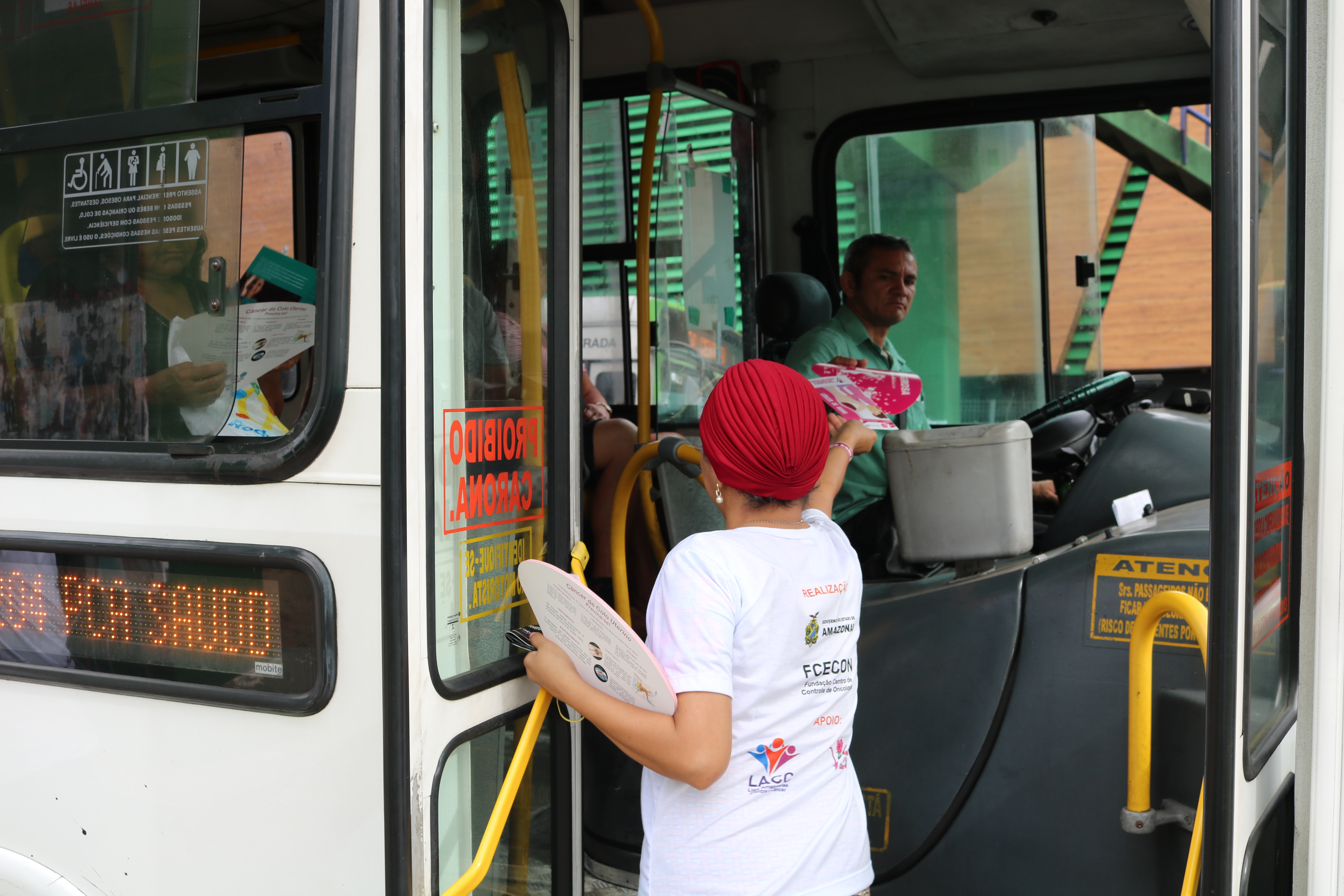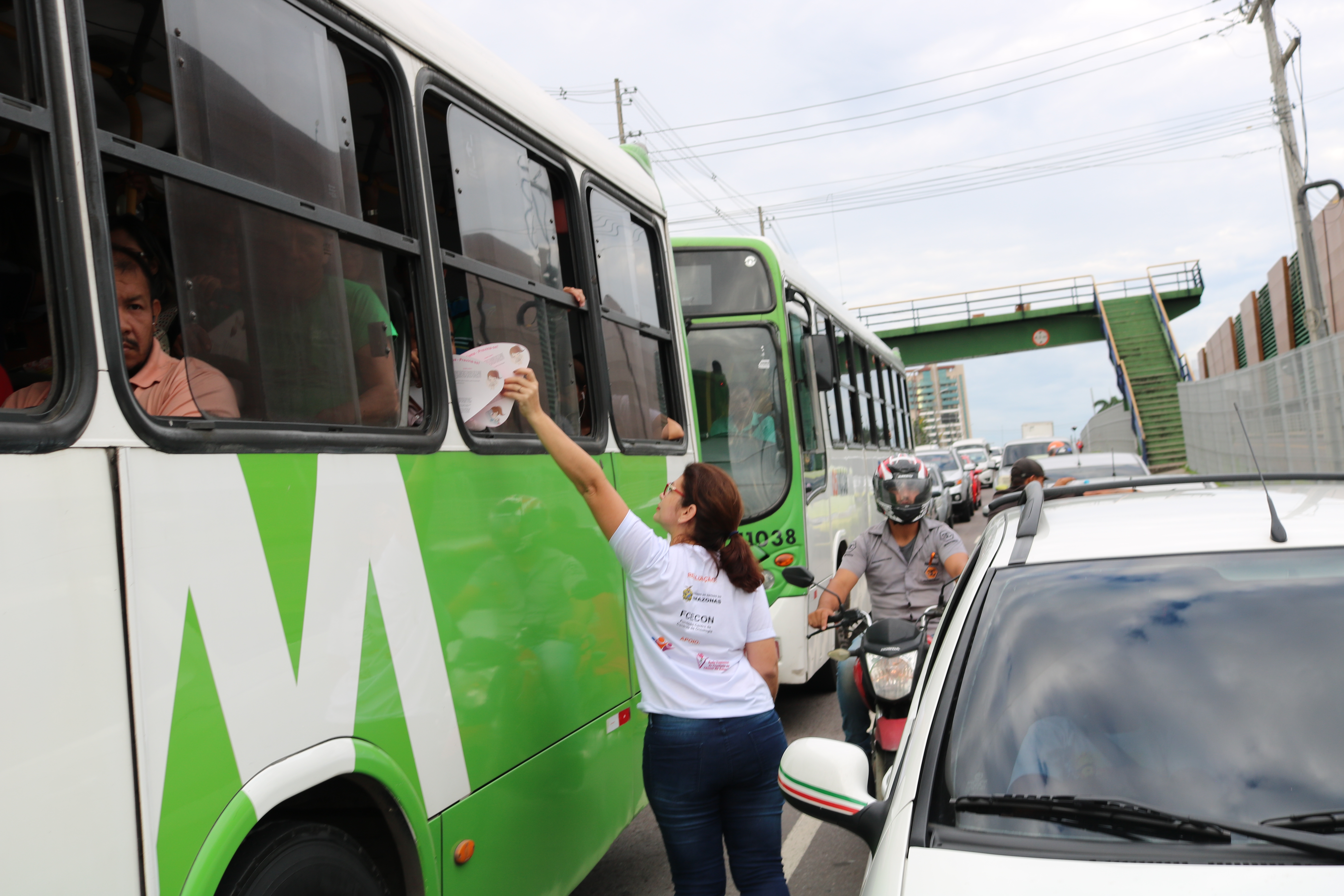 A Fundação Centro de Controle de Oncologia do Estado do Amazonas (Fcecon), vinculada à Secretaria de Estado de Saúde (Susam), realizou, nesta segunda-feira (04/02), uma ação educativa para lembrar o Dia Mundial de Combate ao Câncer. A partir das 7h30, uma equipe do Departamento de Prevenção e Controle do Câncer (DPCC), fez a abordagem com distribuição de conteúdo educativo sobre os ‘Fatores Externos de Risco do Câncer’, no cruzamento das avenidas Pedro Teixeira e Constantino Nery, próximo à Arena da Amazônia, bairro Flores, zona centro-sul de Manaus.